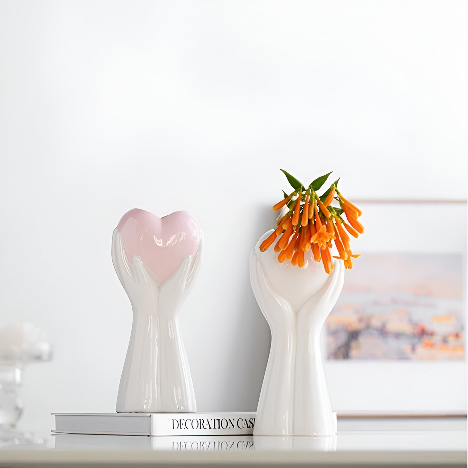Transform your space with the Modern Boho Heart Hands Ceramic Vase—a unique statement piece that blends creativity with calm sophistication. Shaped like gently cupped hands forming a heart, this decorative vase symbolizes love and care while adding a modern artistic touch to your home. Finished in creamy white porcelain, it complements boho, minimalist, farmhouse, and modern interiors effortlessly. Perfect for fresh blooms or dried arrangements, this vase turns any corner into a moment of beauty and meaning.
